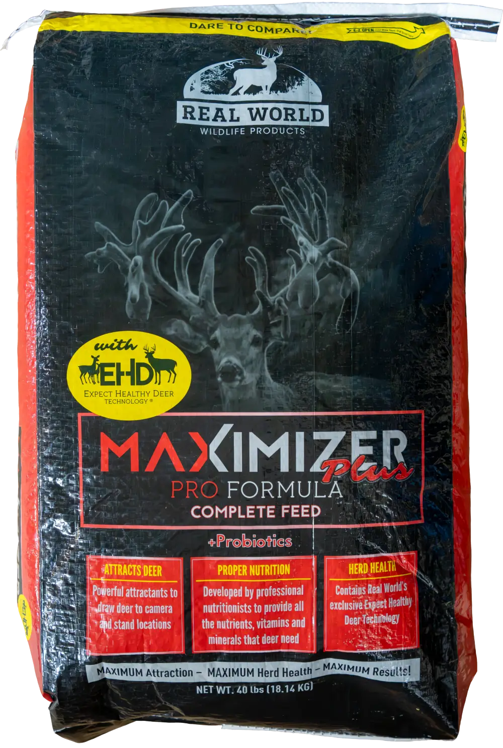 Our feed was designed by Real Worlds professional nutritionists and one of the country’s leading whitetail veterinarians to include every nutrient deer need to remain healthy and in top condition for maximum production. This mix includes protein, energy, minerals, vitamins and other nutrients that bucks need to grow giant antlers and does need to produce healthy fawns. It also contains Real Worlds exclusive Expect Healthy Deer Technology with probiotics for maximum herd health. All of this at a price that blows away the competition!